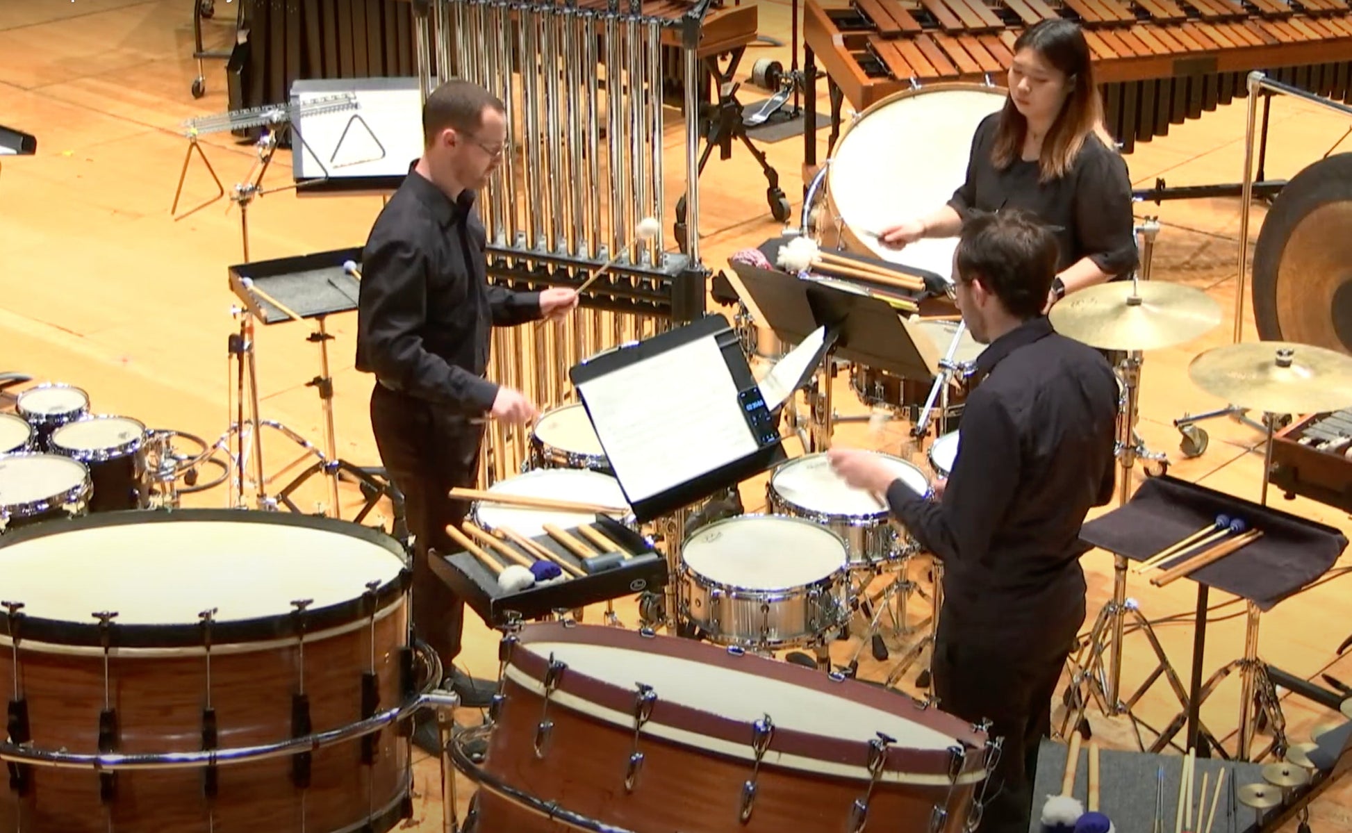 - P1 (bass drum, 3 snare drums, 2 suspended cymbals, crotales, triangle)